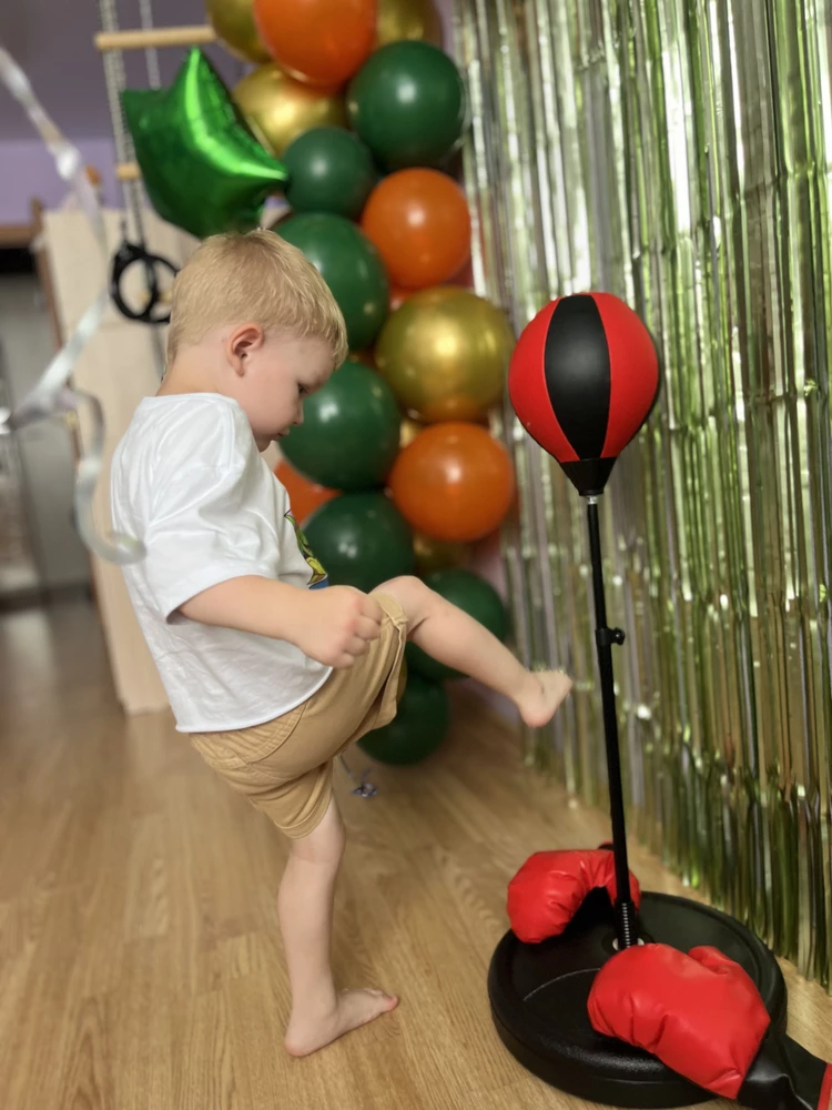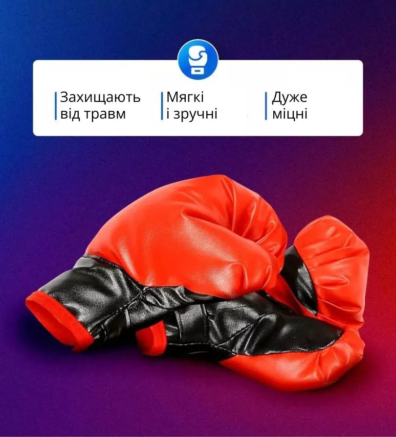 Цікаво і з користю проводити час хлопчакам-шибеникам допоможе Боксерський набір, який обов'язково повинні подарувати батьки або друзі. Хлопчик почуватиметься справжнім бійцем, розвиватиме силу, спритність та увагу.