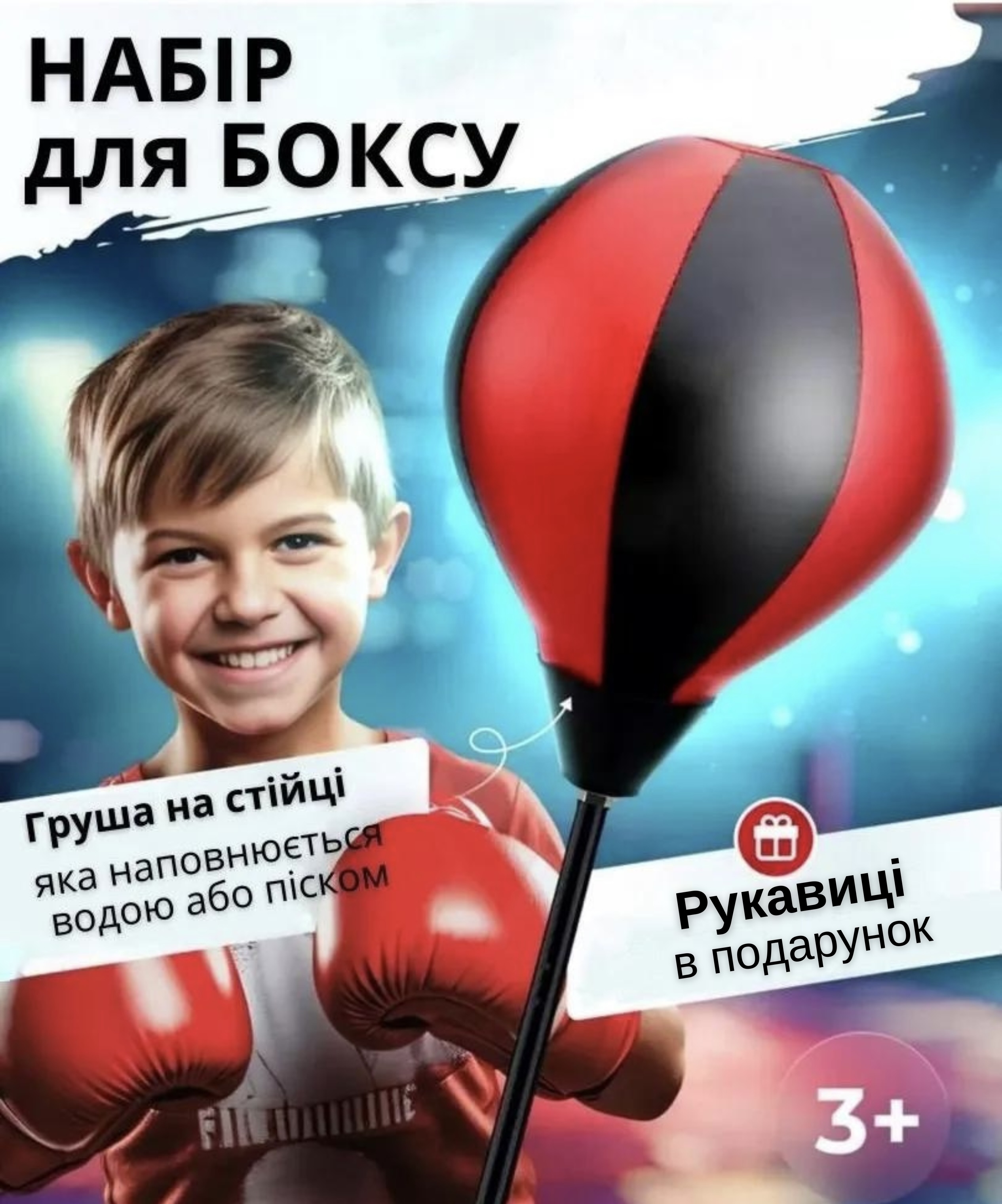 Цікаво і з користю проводити час хлопчакам-шибеникам допоможе Боксерський набір, який обов'язково повинні подарувати батьки або друзі. Хлопчик почуватиметься справжнім бійцем, розвиватиме силу, спритність та увагу.